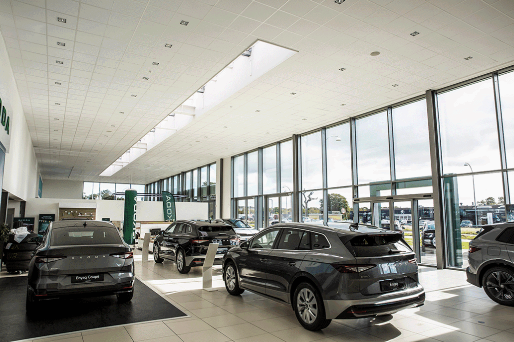 Byggeriet er designet med fokus på funktionalitet, hvor store åbne arealer og fleksible rum gør det muligt at tilpasse udstillingen efter behov og fremtidige ændringer. Materialerne er valgt med omhu for at sikre lang levetid, minimal vedligeholdelse og et professionelt udtryk, der matcher bilhusets brand og image.