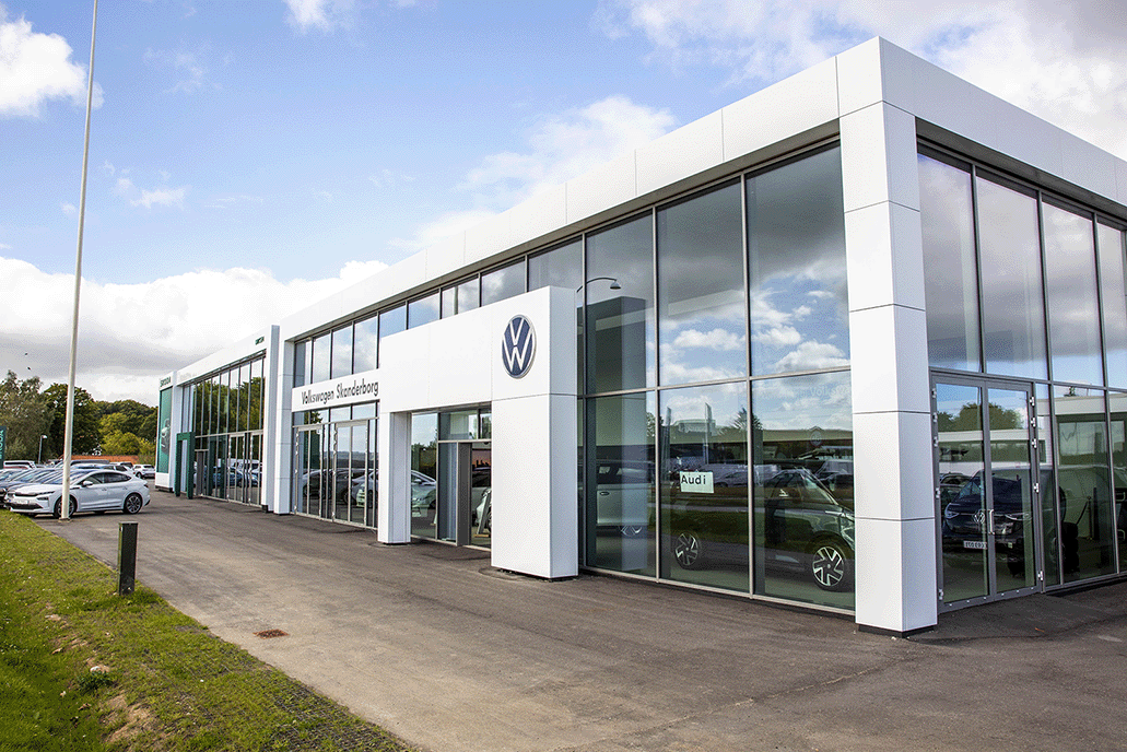 Dirksen Bilhus i Skanderborg er et moderne biludstillings- og servicecenter, der kombinerer funktionalitet med et stilrent og indbydende design. Byggeriet er opført med fokus på fleksible og lyse udstillingsområder, hvor bilerne træder frem i de bedst mulige rammer.