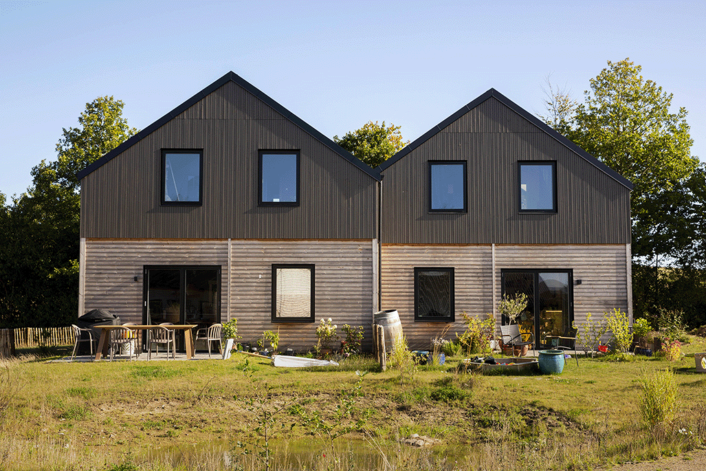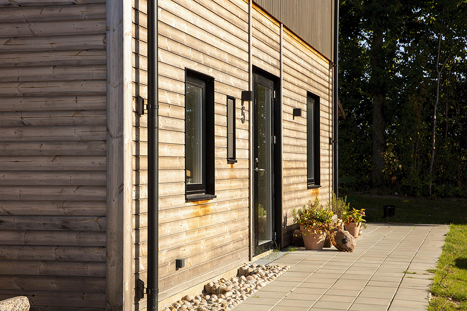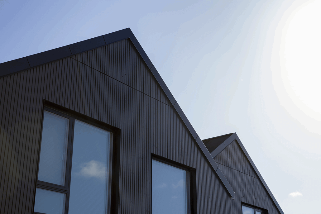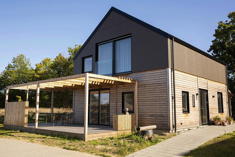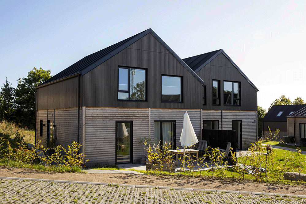 Facaderne er udført i varme trætoner kombineret med moderne isolering, hvilket giver både æstetik og energieffektivitet. Det er et eksempel på, hvordan byggeri kan være smukt, holdbart og miljøvenligt på samme tid.