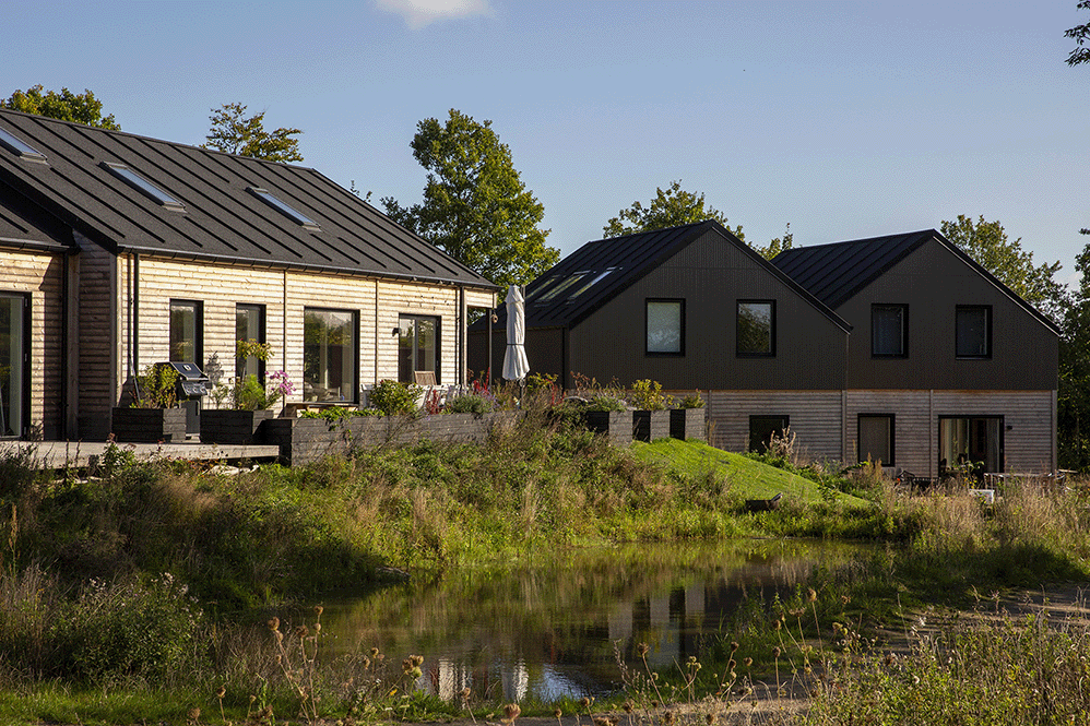 De store vinduespartier i rækkehusene åbner op mod den omkringliggende natur og lader dagslyset strømme ind. Her får man et perfekt udsyn til de grønne områder og Mossø, samtidig med at indeklimaet bliver lyst og behageligt hele året rundt.